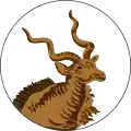 During 1950, the emblem of British Somaliland was adapted and changed to a very intricate emblem. The coat of arms consisted of an escutcheon divided vertically, green and blue, having a chief with a Somali shield in front of two spears in saltire, heads downwards, in natural colours. The green portion contained a representation of a minaret in white, and the blue portion had an Arabian dhow in full sail on waves of the sea, with a golden anchor in the base. A Kudu's head, with the Royal Crown between the horns - all in natural colouring, on the "wreath of the colours." i.e. white and green - forming the Crest.