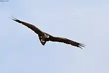 The golden eagle (Aquila chrysaetos) is one of best known birds of prey and most widely distributed species of eagle. It is dark brown, with lighter golden-brown plumage on its nape. | |||||