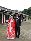 The national dish is kimchi, a spicy, fermented vegetable dish.[28] North Korean kimchi tends to be less spicy than its Southern counterpart.[29] Both are inscribed on UNESCO's Representative List of the Intangible Cultural Heritage of Humanity.[30] The national liquor is Pyongyang Soju.[31] The traditional Choson-ot (hanbok) is the national dress.[32] The national sport is Ssirum, traditional Korean wrestling, but the martial art Taekwondo is important, too.[33]