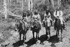 The Paiute people are native to Utah and were a nomadic people that traveled quite frequently. Their original territory covered 30 million acres, in which they moved around following the seasons and animal migration.[14] Paiutes were relatively unharmed by European settlement until the 1850s when Mormon settlers came to their territory.[14] The most notable interaction between the Paiutes and the Mormons was in 1857 during the Mountain Meadows Massacre. After this massacre, the Paiute people have been very vocal about not being involved, while the Mormons at the time of the incident blamed them.[14]