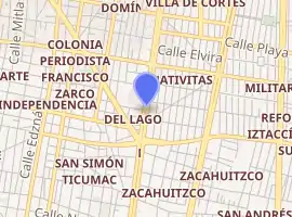 - West: Calzada de Tlalpan and Lago Poniente street, Colonia Lago