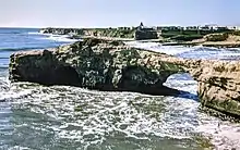 The displacement of the natives began with the Spanish colonization of the Americas when missionaries and soldiers brought the Ohlone into the missions. The population of Native Americans was greatly reduced by European diseases to which they had no resistance.[3] Governance of the area was transferred from Spain to Mexico after the Mexican War of Independence. The citizens of Mexico used what is now Natural Bridges State Beach as pasture land for their cattle. California became part of the United States after the Mexican–American War.[3]