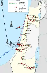 Natural gas in Israel is a primary energy source in Israel, mainly utilized for electricity production and to lesser degree in industry. Israel began producing natural gas from its own offshore gas fields in 2004. Between 2005 and 2012, Israel had imported gas from Egypt via the al-Arish-Ashkelon pipeline, which was terminated due to Egyptian Crisis of 2011-14. As of 2017, Israel produced over 9 billion cubic meters (bcm) of natural gas a year.[1] Israel had 199 billion cubic meters (cu m) of proven reserves of natural gas as of the start of 2016.[2] In early 2017, Israel began exporting natural gas to the Kingdom of Jordan.