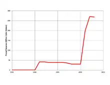 In 2000, a modest discovery was made when a 33-billion-cubic-metre (BCM), or 1,200-billion-cubic-foot, natural-gas field was located offshore Ashkelon, with commercial production starting in 2004. As of 2014 however, this field is nearly depleted—earlier than expected due to increased pumping to partially compensate for the loss of imported Egyptian gas in the wake of unrest associated with the fall of the Mubarak regime in 2011. In 2009, a significant gas find named Tamar, with proven reserves of 223 BCM or 7.9×1012 cu ft (307 BCM total proven + probable) was located in deep water approximately 90 km (60 mi) west of Haifa, as well as a smaller 15 BCM (530×109 cu ft) field situated nearer the coastline.[11][12][13][14] Furthermore, results of 3D seismic surveys and test drilling conducted since 2010 have confirmed that an estimated 621 BCM (21.9×1012 cu ft) natural-gas deposit exists in a large underwater geological formation nearby the large gas field already discovered in 2009.[15][16][17][18] The US Energy Information Administration listed Israel as having 6.2 trillion cubic feet of proved reserves as of 1 January 2015.[19]