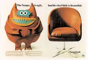 A marketing campaign of the 1960s and 1970s asserted humorously that Naugahyde was obtained from the skin of an animal called a "Nauga". The claim became an urban myth.[3] The campaign emphasized that, unlike other animals, which must typically be slaughtered to obtain their hides, Naugas can shed their skin without harm to themselves.[4] The Nauga doll, a squat, horned monster with a wide toothy grin, became popular in the 1960s and is still sold today.[5]