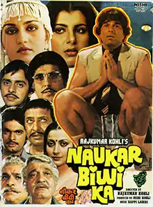 Naukar Biwi Ka is a 1983 Hindi comedy film, a remake of the Punjabi film Naukar Wohti Da (1974). The film stars Dharmendra, Raj Babbar, Anita Raj, Reena Roy, Kader Khan, Pran and Om Prakash. It was directed by Rajkumar Kohli. The film was a box office hit.