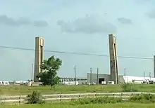 - Burke, Dana (2016-12-31), "The World War II story behind two giant, mysterious columns in Hitchcock", Houston Chronicle, The Bay Area Citizen