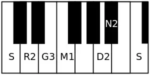 | Avarohanam | Ṡ N₂ D₂ M₁ G₃ R₂ S |