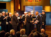 Talk show Montel Williams was awarded the Superior Public Service Award on 19 March 2008. This award was presented to Williams in honor of his "continuous support and recognition of Sailors, Marines and their families throughout his 17 years on television."[4] Williams enlisted in the United States Marine Corps in 1974 and in 1975 he was selected as the first black Marine to attend the Navy Prep School before graduating from the United States Naval Academy in 1980. Williams was commissioned as an intelligence officer specializing in cryptology.[4]
