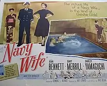 Navy Wife is a 1956 comedy film directed by Edward Bernds (who also directed "Three Stooges" and "Bowery Boys"), and starring Joan Bennett, Gary Merrill, Shirley Yamaguchi. The screenplay was written by Kay Lenard, based on the novel Mother Sir by Tats Blain. The film was produced by Walter Wanger, who was Bennett's husband in real life.