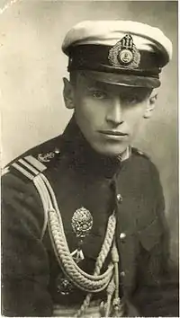 During 1917 Russian Revolution, several ships of the Russian Imperial Navy's Black Sea Fleet, commanded and crewed by ethnic Ukrainians, declared themselves the Navy of the newly autonomous Ukrainian People's Republic Black Sea Fleet commander Mikhail Sablin raised the colours of the Ukrainian National Republic on 29 April 1918.[2][3] However, few further steps on establishing a navy were made as the Ukrainian government lost control over coastal territories.