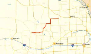 1. "Nebraska Highway Reference Log Book" (PDF). Nebraska Department of Roads. 2015. pp. 173–174. Retrieved January 7, 2017.