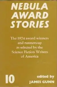 Nebula Award Stories 10 is an anthology of award-winning science fiction short works edited by James Gunn. It was first published in the United Kingdom in hardcover by Gollancz in November 1975. The first American edition was published in hardcover by Harper & Row in December of the same year. Paperback editions followed from Berkley Medallion in the U.S. in December 1976, and Corgi in the U.K. in June 1977. The American editions bore the variant title Nebula Award Stories Ten. The book has also been published in German.[1]