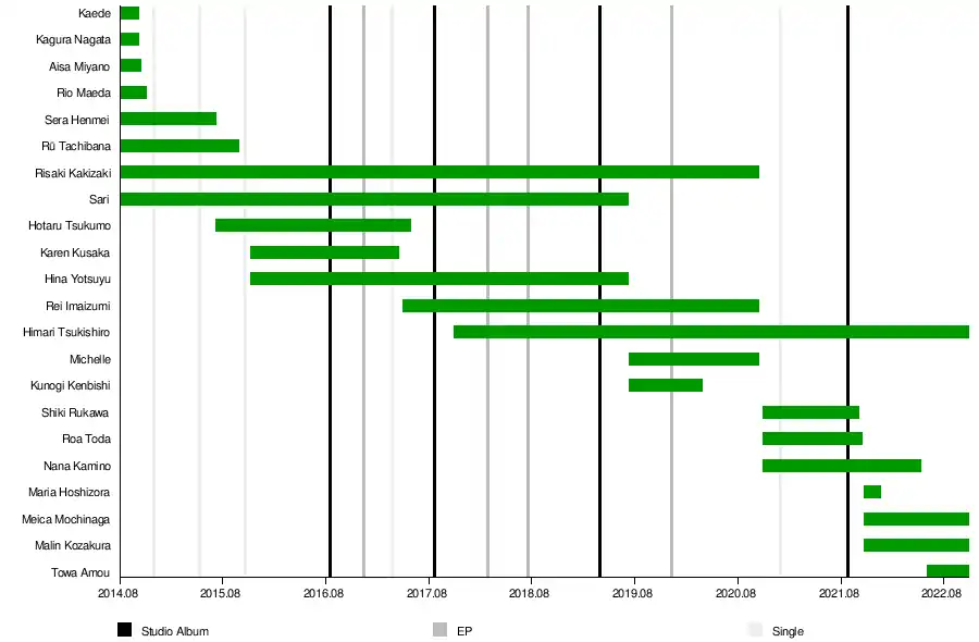 - Shiki Rukawa (2020-2021, left to focus on solo work, her YouTube channel)