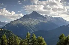 ![]() View from Sölden on the Ramolkamm ridge of the Ötztal Alps, with the Nederkogel in the center of the image. | |