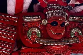 Neeliyar Kottam still preserves the jungle surroundings. Its sanctum is not roofed.[4] When the ritualistic Theyyam performance is seasonal elsewhere, the belief is that the Goddess graces the Neeliyar Kottam grooves whenever a devotee makes an offering.[3] The Theyyam costume consists of large blood-red clothes, with a 20 ft bamboo framed headgear and traditional Theyyam ornaments. Artists of Vannan community performs the Theyyam of Neeliyar Bhagavathi or the Ottathira[3][4]