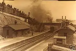 Due to low public usage of the station, caused by the better sited Corporation tramway services, it was closed to passengers on 28 October 1940 although the buildings and the signal box remained in situ until the 1970s. All traces of the original station have now been removed, with even the footbridge replaced in 2002 with a new structure.[3] However, the station entrance is visible but claimed by the vegetation.