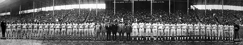 After the organization of the first Negro National League (NNL) in 1920 and of the Eastern Colored League (ECL) in 1923, many Negro league fans hoped that the two leagues would compete in a post-season championship similar to the World Series held by the white leagues. On September 2, 1924, Rube Foster, the president of the NNL, announced that Judge Kenesaw Mountain Landis, Commissioner of Baseball for the white major leagues, had been asked to arbitrate the differences between the NNL and ECL and establish an agreement similar to the one used by the American and National Leagues. The proposed agreement required the two leagues to respect each other's contracts, made allowances for players who had jumped contracts to stay with their current teams, and for a post-season championship between the leagues.[1] The first game of the championship series opened at Philadelphia on October 3, 1924, between the Kansas City Monarchs of the NNL and the Hilldale Club of the ECL; the final game was played at Chicago on October 20, with the Monarchs emerging as the series winner.[2] In 1928, the ECL folded, with their teams returning to independent play, and the series entered a 15-year hiatus. The first NNL also folded after the 1931 season.[3]
