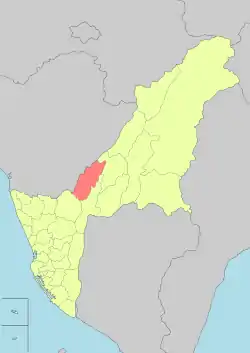 Neimen District (Chinese: 內門區; pinyin: Nèimén Qū) is a rural district of Kaohsiung in southern Taiwan. Neimen is located in the mountainous area with very little flat land. Qishan River passes through the Neimen district. The whole district is under water reserve protection. The climate of Neimen belongs to the tropical monsoon climate.