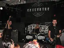 ![]() Nekromantix performing in 2011. Left to right: Nekroman, Lux, and Mesa | |