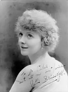 Briercliffe left the D'Oyly Carte company in January 1918 and appeared in London in the musical comedy Pamela, at the Palace Theatre with Lily Elsie and Owen Nares.[10] She then took over the role of Joy Chatterton in the long-running musical The Boy at the Adelphi Theatre.[5][11] She rejoined D'Oyly Carte for the 1919–20 London season, when the company returned to London for the first time in a decade, at the Prince's Theatre, playing all her former roles.[12] In 1920 she returned to musical comedy in London, appearing with Jack Buchanan in Wild Geese by Ronald Jeans and Charles Cuvillier;[13] as Dulcenea in Oh! Julie, composed by H. Sullivan Brooke and Herman Darewski, at the Shaftesbury Theatre;[14] and as the Shepherdess in the children's play, The Shepherdess Without a Heart at the Garrick Theatre, of which The Times wrote, "Many a young heart must have been lost yesterday afternoon to Miss Nellie Briercliffe. … She looked delightful, she sang sweetly, and she acted so prettily that there was a general sigh of regret when she became a china figure once again."[15]