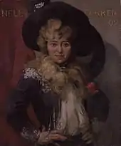Farren continued at the Gaiety for the next 25 years, playing in comedies of all kinds and in Shakespearean dramas, first under Hollingshead and then under George Edwardes, performing the lead in dozens of shows, many also starring Edward Terry, Kate Vaughan, Fred Leslie and E. W. Royce. She was most acclaimed in the "principal boy" roles.[1][2] These roles permitted the actress to show her legs in tights, and Farren became very popular with the young men of the Gaiety audience, who would wear a coloured scarf to show support for their favourite actress. Farren's colours were dark blue, light blue and white, and she could look out over the audience to compare the number of fans displaying her colours as compared to the colours of the other actresses.[13] According to Hollingshead, Farren developed a "spinal complaint, which troubled her in her early Gaiety career [and] developed into locomotor ataxy" later.[14]