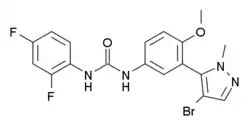 - Teegarden BR, Li H, Jayakumar H, Strah-Pleynet S, Dosa PI, Selaya SD, et al. (March 2010). "Discovery of 1-[3-(4-bromo-2-methyl-2h-pyrazol-3-yl)-4-methoxyphenyl]-3-(2,4-difluorophenyl)urea (nelotanserin) and related 5-hydroxytryptamine2A inverse agonists for the treatment of insomnia". Journal of Medicinal Chemistry. 53 (5): 1923–36. doi:10.1021/jm9007328. PMID 20143782.