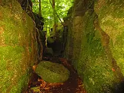 Nelson-Kennedy Ledges State Park is a 167-acre (68 ha) public recreation area offering trails and picnicking located in Nelson Township, Portage County, Ohio, United States.[3] Within the park are angled rock formations 50 to 60 feet (18 m) high with ground fissures as deep as 60 feet (18 m). It is accessible from U.S. Route 422 and State Route 305 via State Route 282.[4]