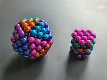 Neodymium magnet spheres constructed in the shape of a cube