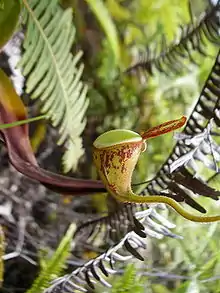 Nepenthes ampullaria, unlike other members of its genus, has evolved away from carnivory and the plants are partly detritivores, collecting and digesting falling leaf litter in their pitchers.[7][8][9]