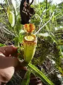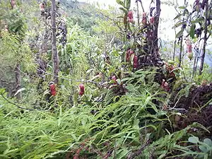 Nepenthes eustachya grows in close proximity to a number of other lowland species, including N. albomarginata, N. ampullaria, N. gracilis, N. longifolia, and N. sumatrana.[12][20][21] It is known to hybridise with all of these species.