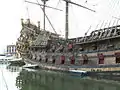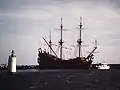 The Neptune is a ship replica of a 17th-century Spanish galleon designed by Naval Architect David Cannell of www.dmcmarine.com. The ship was built in 1985 for Roman Polanski's film Pirates, where she portrayed the Spanish ship of the same name. An accurate replica above the waterline, but sporting a partly steel hull, planked in timber and two main engines with Schottel drive, the Neptune is currently a tourist attraction in the port of Genoa, where its interior can be visited for a 9 euro entry fee.[1] In 2011, she portrayed the Jolly Roger, the ship of Captain Hook, in the TV miniseries Neverland.[2]