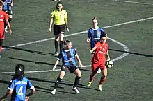 In 2014, she was nominated a FIFA-listed referee.[3] She was appointed referee at the 2015 UEFA Women's Under-17 Special Preparation Tournament,[5] UEFA Women's Under-17 Championship qualification matches of 2017 Group 11, 2018 Group 9 and 2019 Group 8.[6] She was named referee at the 2019 World High School Football Championship held in Belgrade, Serbia.[7][8] Muratdağı officiated the international friendly matches of women's teams Jordan vs Japan at Amman in November 2017,[9] Jordan vs Taiwan at Amman in March 2018,[10] and Turkey vs Estonia at Istanbul in April 2018.[11] At the 2018–19 UEFA Women's Champions League knockout phase match of Brøndby vs LSK Kvinner, she served as the fourth official.[12]