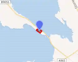 To the southeast are the Standing Stones of Stenness and to the north-west is the Ring of Brodgar. A short bridge connects these two sites. Also visible from the site are, to the east, the chambered cairn at Maeshowe and, to the southeast the Barnhouse Settlement. A couple of kilometres northwest of the Ring of Brodgar is the Ring of Bookan, a third henge, with associated mounds.[6] The Neolithic village at Skara Brae lies a few kilometres away, as does the chambered cairn at Unstan. More archaeology is probably submerged beneath the lochs.[7]
