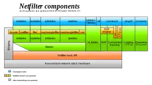 Netfilter represents a set of hooks inside the Linux kernel, allowing specific kernel modules to register callback functions with the kernel's networking stack. Those functions, usually applied to the traffic in the form of filtering and modification rules, are called for every packet that traverses the respective hook within the networking stack.[3]