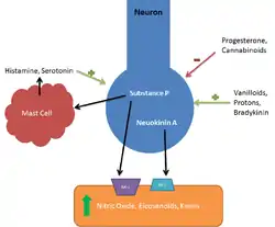 Neurokinin A (NKA), formerly known as Substance K, is a neurologically active peptide translated from the pre-protachykinin gene.[2] Neurokinin A has many excitatory effects on mammalian nervous systems and is also influential on the mammalian inflammatory and pain responses.[3]