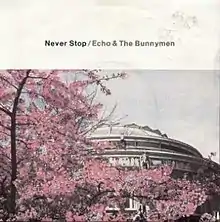 "Never Stop" is a single which was released by the British post-punk band Echo & the Bunnymen on 8 July 1983. It reached number fifteen on the UK Singles Chart the same month.[1] The title track on the 12-inch single is a remixed version called "Never Stop (Discotheque)" and is another minute and fifteen seconds longer.