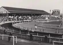 After the war Totalisator turnover figures peaked at £3,095,736.[10] The healthy bank balance of the New Cross Greyhounds Ltd Company and the GRA allowed the construction of three new covered stands, two on the home straight and one on the back straight. Restaurant buffet bars, tea buffet bars and licensed bars were to be found in all three enclosures.[8]