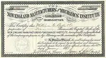 The New England Manufacturers' and Mechanics' Institute (established in 1879) flourished in the 1880s in Boston, Massachusetts. It existed as a rival to the long-established Massachusetts Charitable Mechanic Association. Individuals affiliated with the NEM and M Institute included businessman John F. Wood,[1][2] James L. Little, John M. Little, Samuel R. Payson, William B. Merrill, and Frederick W. Griffin.[3]