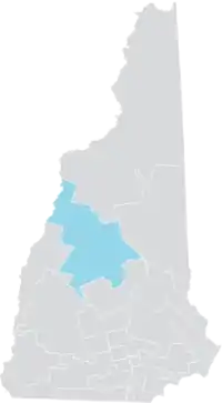 District 2 covers parts of Belknap, Grafton, and Merrimack Counties in the center of the state. The district includes the towns of Center Harbor, Meredith, New Hampton, Sanbornton, and Tilton in Belknap County; Alexandria, Ashland, Bridgewater, Bristol, Campton, Dorchester, Ellsworth, Grafton, Groton, Haverhill, Hebron, Holderness, Orange, Orford, Piermont, Plymouth, Rumney, Warren, and Wentworth in Grafton County; and Danbury, Hill, and Wilmot in Merrimack County.[3]