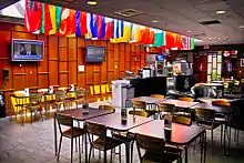 Former Republican candidate Sam Brownback's visit attracted the negative attention of the national media as the image of Brownback at the podium speaking to a mostly empty room epitomized his failing candidacy.[37][38] In 1972, the eventual Democratic nominee for United States presidential election George McGovern visited the college and after his speech jokingly declared he would become a vice presidential candidate, as he was clearly the front runner.[39]