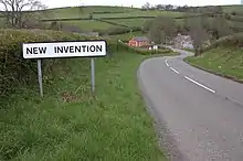 New Invention is a hamlet in Shropshire, England on the A488 between Clun and Knighton. It comprises little more than four houses around a cross-roads and a neighbouring farm called The Weir, known in history as the Wear or Ware. Of the four houses, one was a blacksmith's shop, one a pub called the Stag's Head, and one a Methodist chapel built in 1874. It served as one of many local locations for the film Gone to Earth (released 1950), directed by Michael Powell and Emeric Pressburger.[1] The River Redlake passes through. The population as of the 2011 census is listed under Clun.
