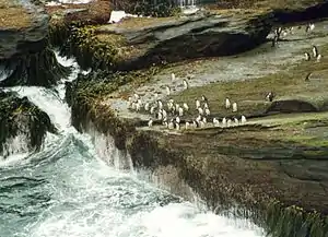 The New Island group has been identified by BirdLife International as an Important Bird Area (IBA). Birds for which the site is of conservation significance include Falkland steamer ducks, ruddy-headed geese, gentoo penguins (ca. 6600 breeding pairs), southern rockhopper penguins (ca. 13,000 pairs), Magellanic penguins, black-browed albatrosses (ca. 29,000 pairs), thin-billed prions, white-chinned petrels, imperial shags, striated caracaras, white-bridled finches, blackish cinclodes and Cobb's wrens.[1] It is also home to dolphin gulls, Falkland skuas, upland geese and long-tailed meadowlarks amongst other species.