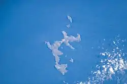 New Island (Spanish: Isla de Goicoechea) is one of the Falkland Islands, lying north of Beaver Island. It is 238 km (148 mi) from Stanley and is 13 km (8.1 mi) long with an average width of 750 m (820 yd). The highest point is 226 metres (741 ft). The northern and eastern coasts have high cliffs but the eastern coasts are lower lying, with rocky shores and sandy bays. There are several smaller offshore islands in the group; North Island and Saddle Island have high cliffs but Ship Island and Cliff Knob Island are lower lying.[1]