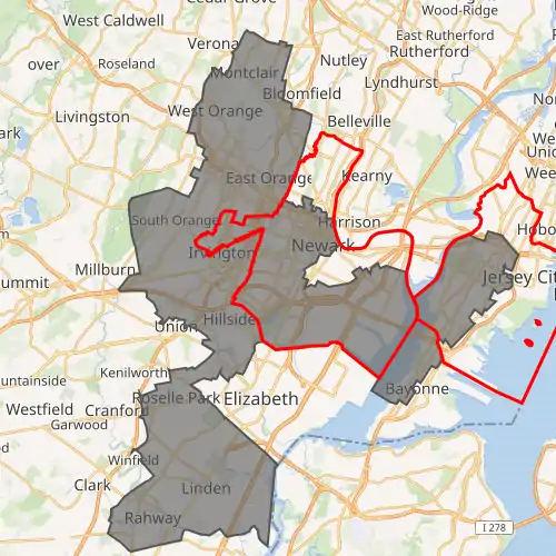 Interactive map of district boundaries, with Newark and Jersey City highlighted in red | |||