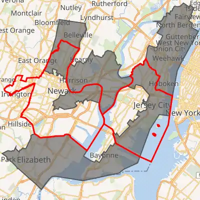 2013–present parts of Bergen (Fairview), Essex (Belleville and part of Newark), Hudson, and Union (Elizabeth) ![]() |