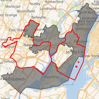 Interactive map of district boundaries, with Newark and Jersey City highlighted in red | |||