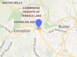 ![]() The area of the western terminus for Route 14 in the area of Butler as viewed by OpenStreetMap | ||||