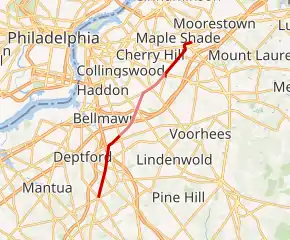 | Gloucester | Deptford Township | 0.00 | 0.00 | Southern terminus | |