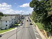The present-day alignment of Route 57 west of Penwell was built as a part of the Washington Turnpike, chartered in 1806 to run from Morristown to Phillipsburg. This road was later signed as part of the William Penn Highway in 1916, running from New York City to Pittsburgh.[6] The whole of what is now Route 57 was legislated as a part of pre-1927 Route 12, a route that was designated to run from Paterson west to Phillipsburg in 1917.[7][8] A one-mile (1.6 km) stretch of the road in Franklin Township was the first concrete road built in New Jersey, having been constructed in 1912. The concrete was supplied by Thomas Edison's Portland cement company and some of the original concrete is still in use on the road today.[9][10] In the 1927 New Jersey state highway renumbering, this portion of pre-1927 Route 12 west of Penwell in Mansfield Township was legislated as a part of Route 24, a route that was to run from Phillipsburg to Newark, while the portion between Penwell and U.S. Route 46 in Hackettstown was designated as Route S24, a spur of Route 24.[11][12]